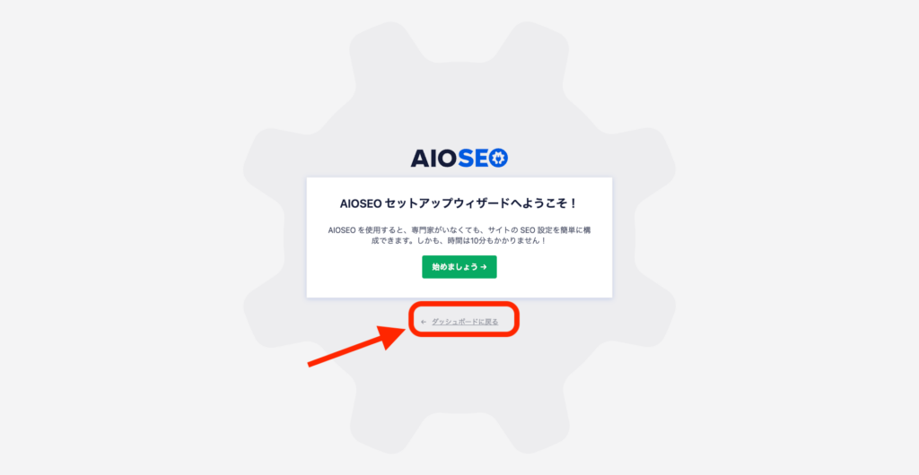 セットアップウィザードが表示されますが、ここではいったんダッシュボードに戻ります。