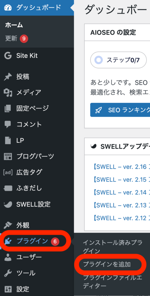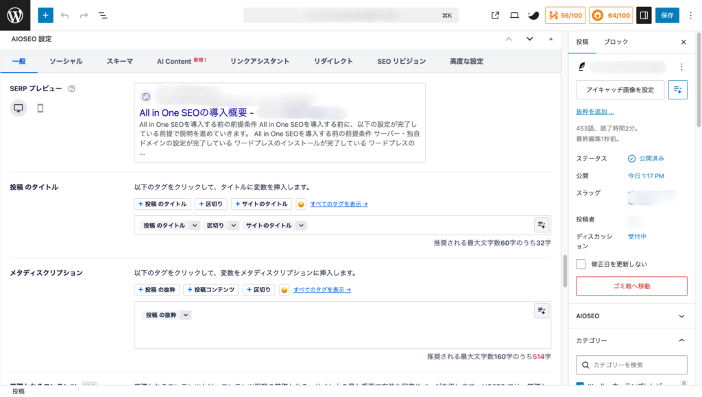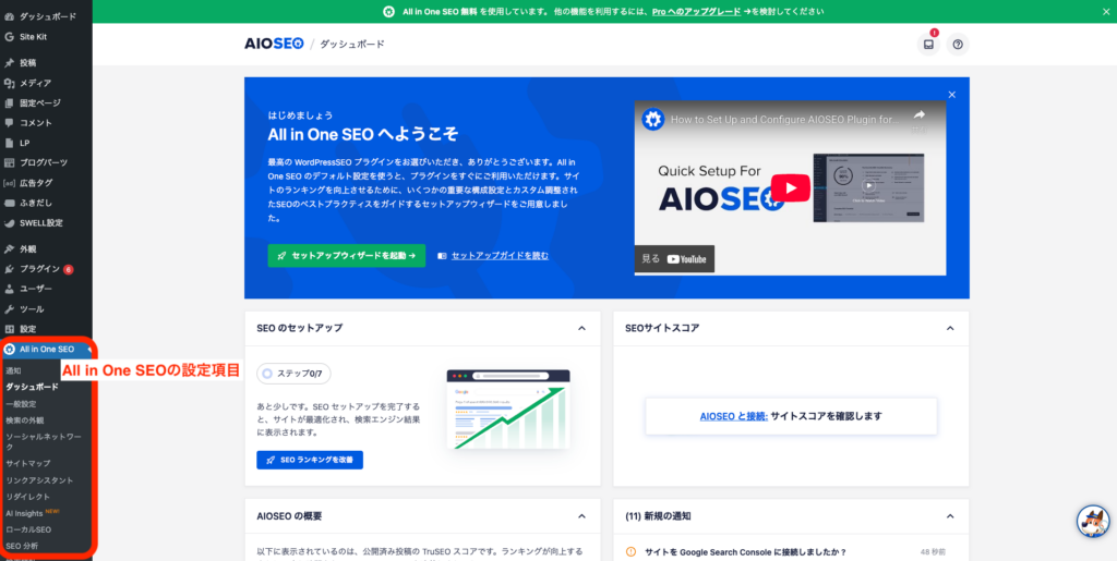 以上で、WordPress管理画面にAll in One SEOの設定項目が追加されました。
