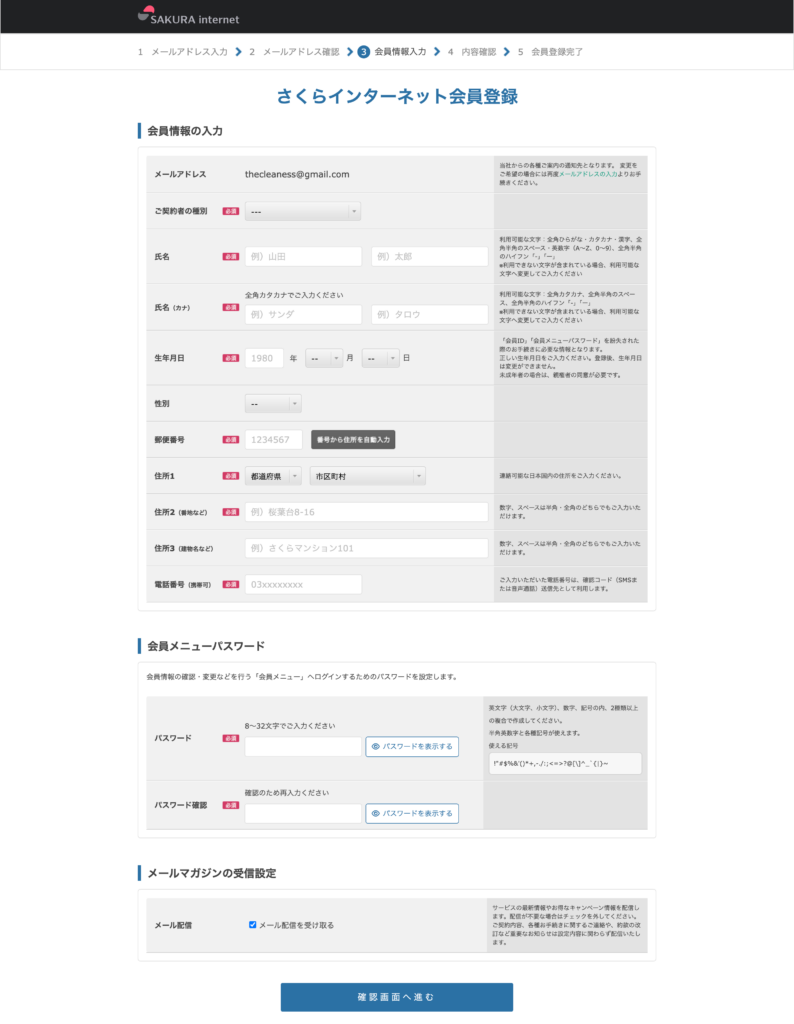 入力内容を確認のうえ、申し込み完了まで進めます。