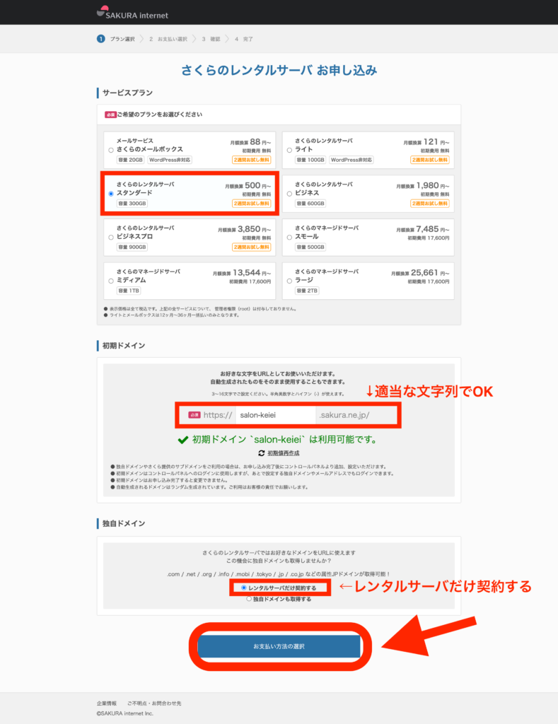 WordPressが利用できる「スタンダード」プランを申し込みます。
