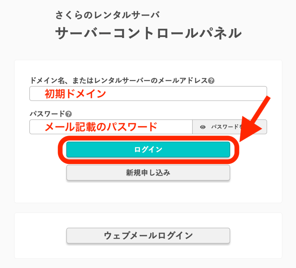 コチラからさくらサーバーのコントロールパネルにログインします。