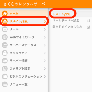 どちらの場合であっても、ドメインの追加は下記画像の「ドメイン/SSL」から設定できます。